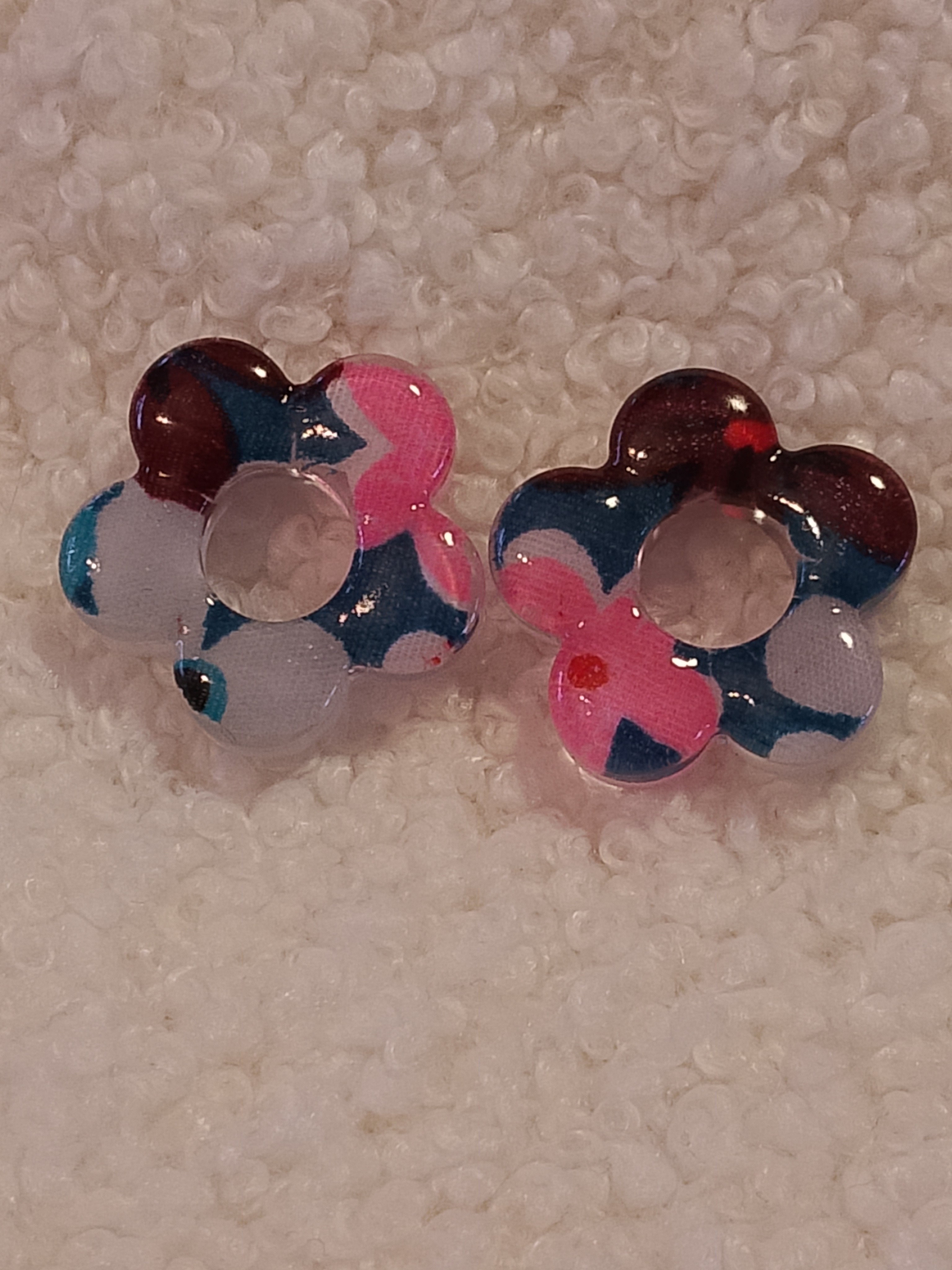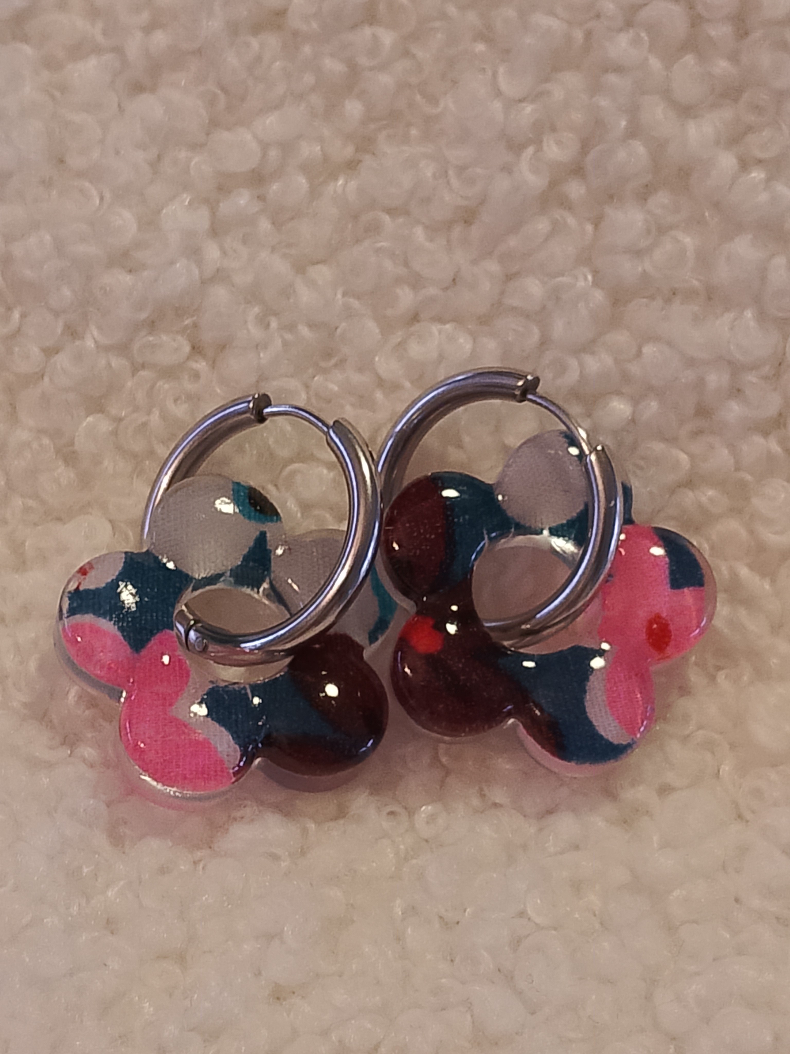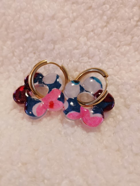 Dans un monde où les pampilles sont pour la plupart en résine, mes boucles d’oreilles se distinguent par une alliance unique de tissu et de résine.
