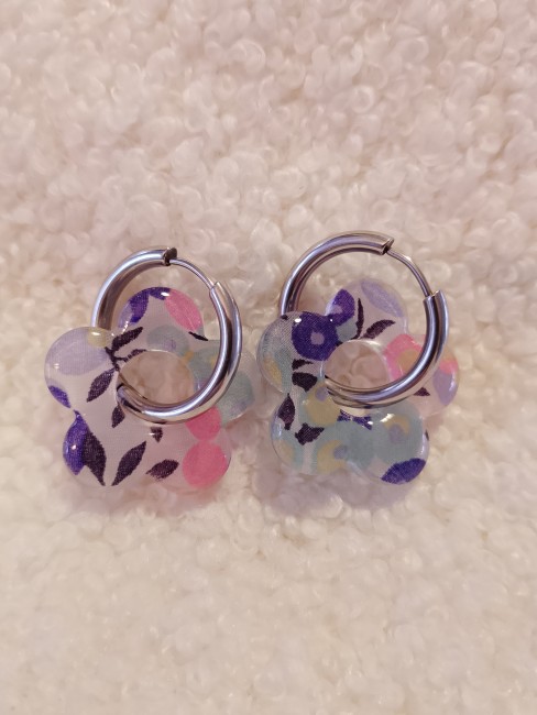 Boucles d'oreilles tissu et résine Charlotte