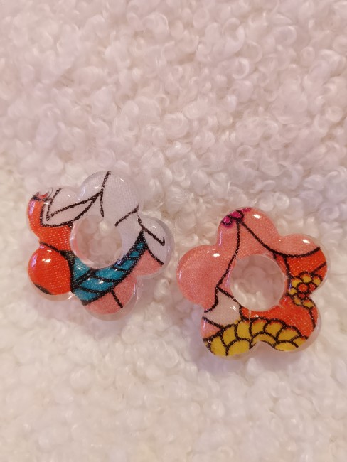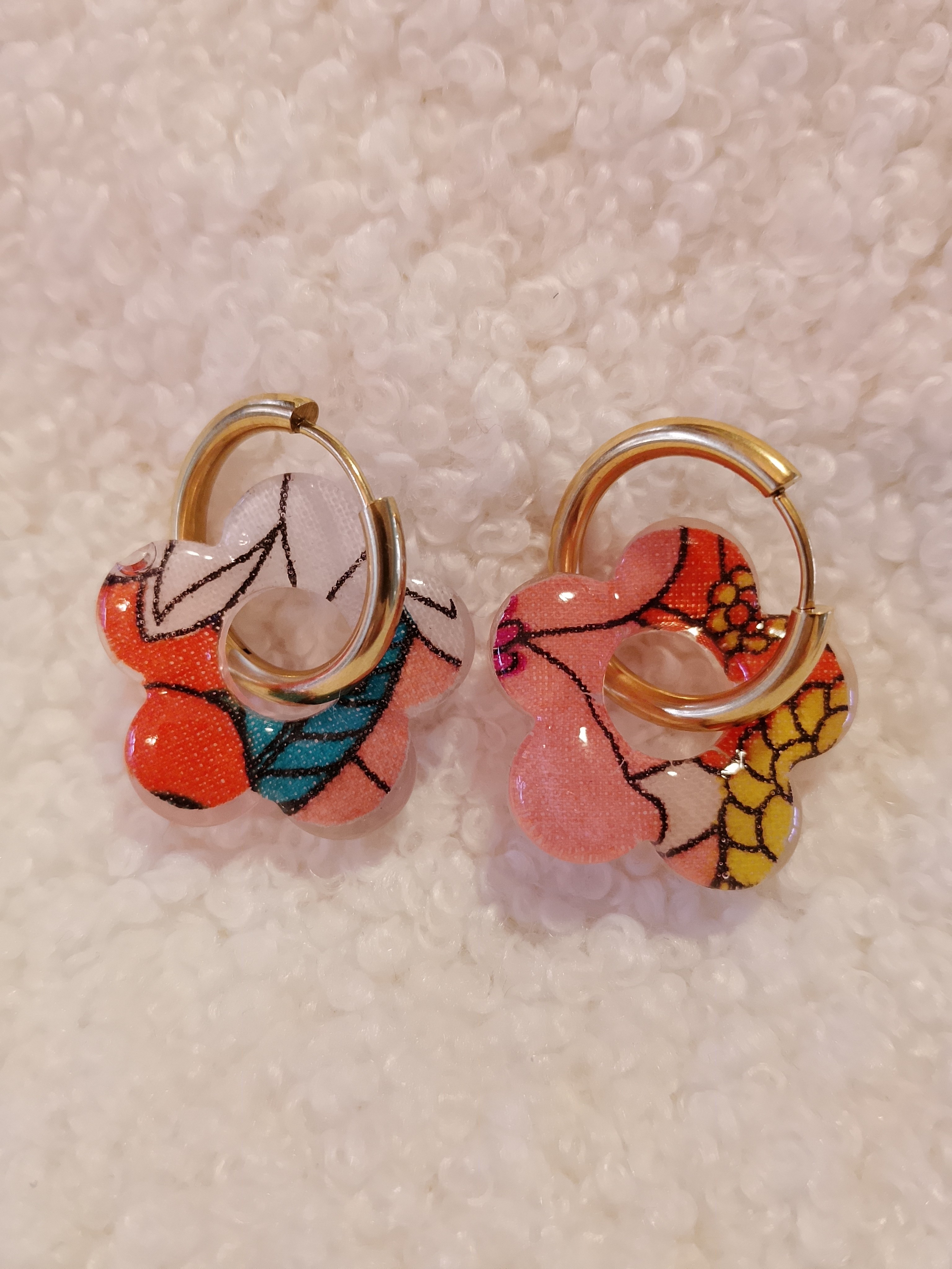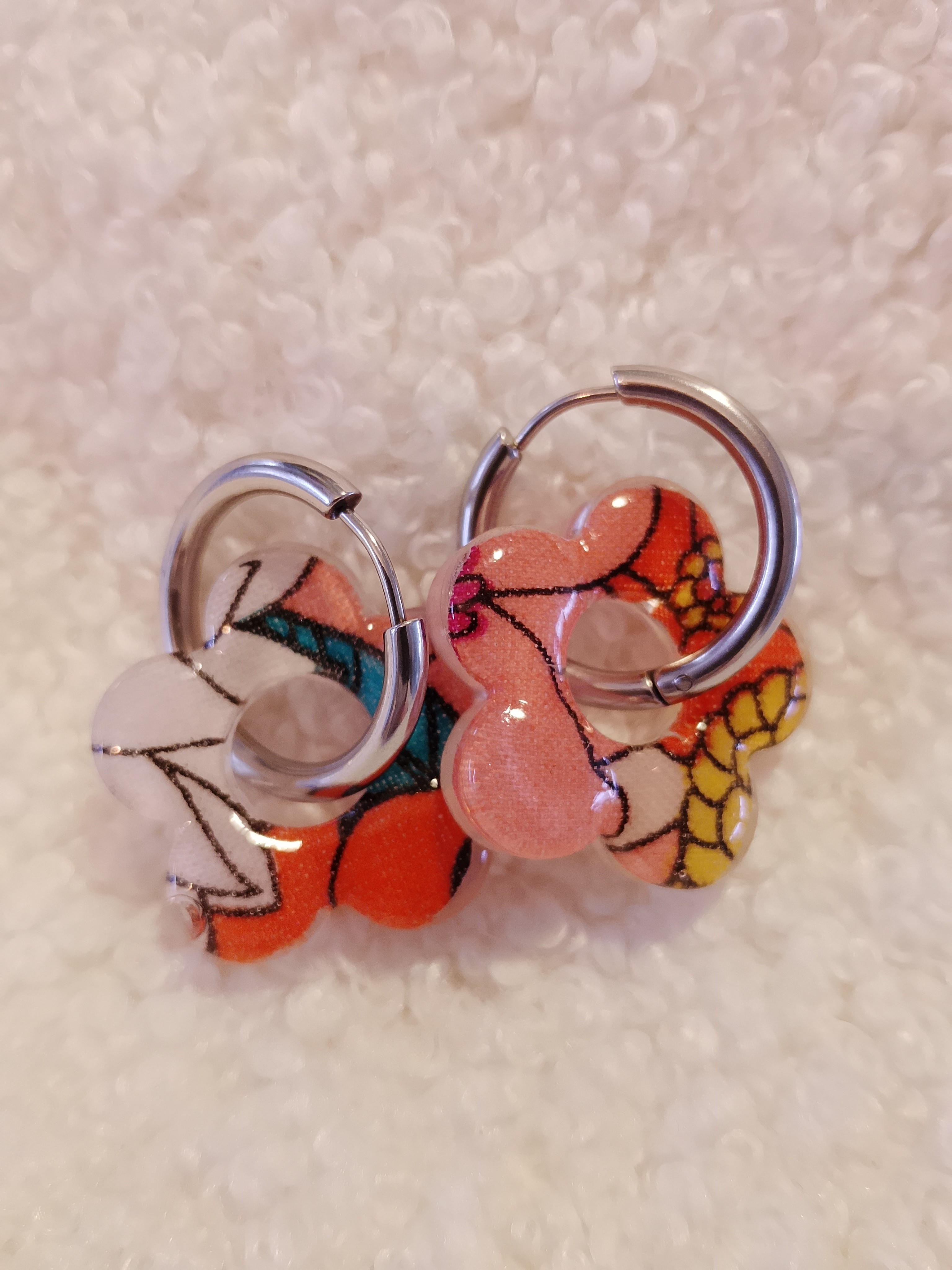 Dans un monde où les pampilles sont pour la plupart en résine, mes boucles d’oreilles se distinguent par une alliance unique de tissu et de résine.