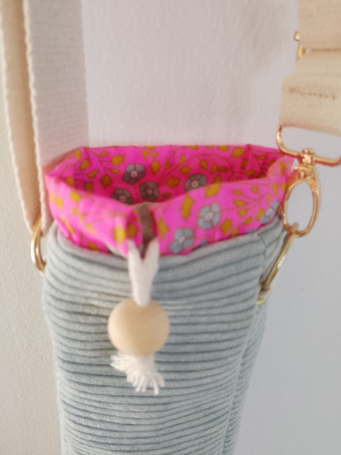 Conçu avec soin dans mon atelier, il associe un velours côtelé élégant et résistant à une coulisse colorée et à une doublure en coton naturel.