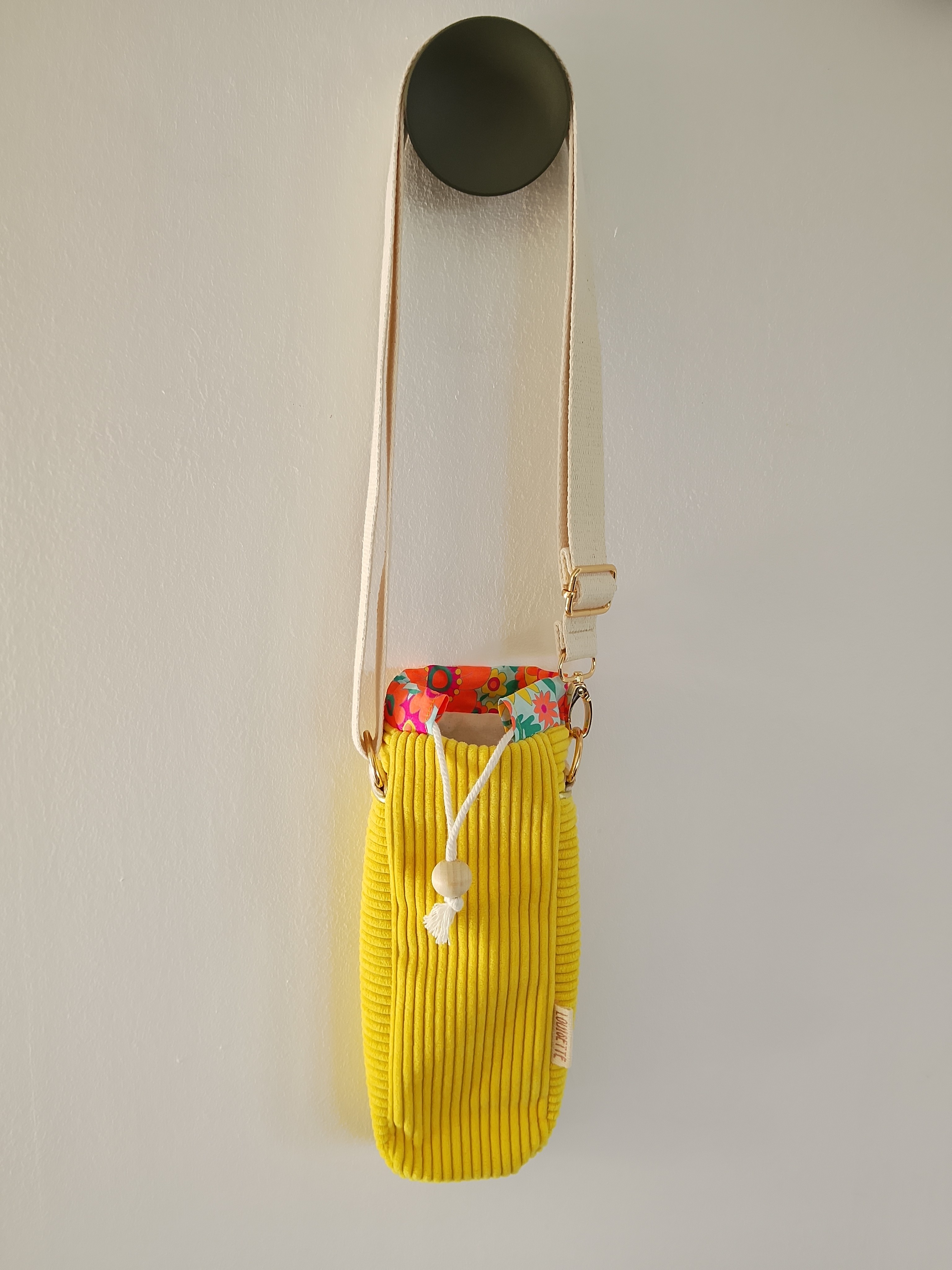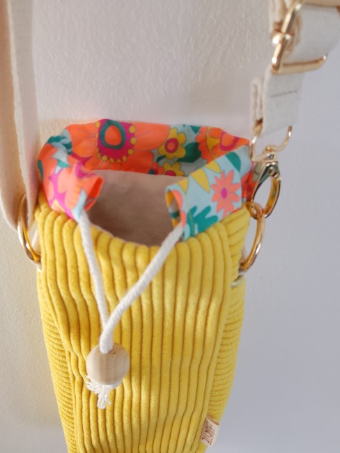 Conçu avec soin dans mon atelier, il associe un velours côtelé élégant et résistant à une coulisse colorée et à une doublure en coton naturel.