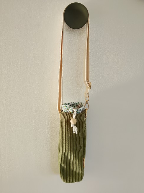 Que ce soit pour une balade, une randonnée, une séance de sport ou une journée bien remplie, ce sac à gourde artisanal vous permet d’emporter votre gourde facilement et avec style.