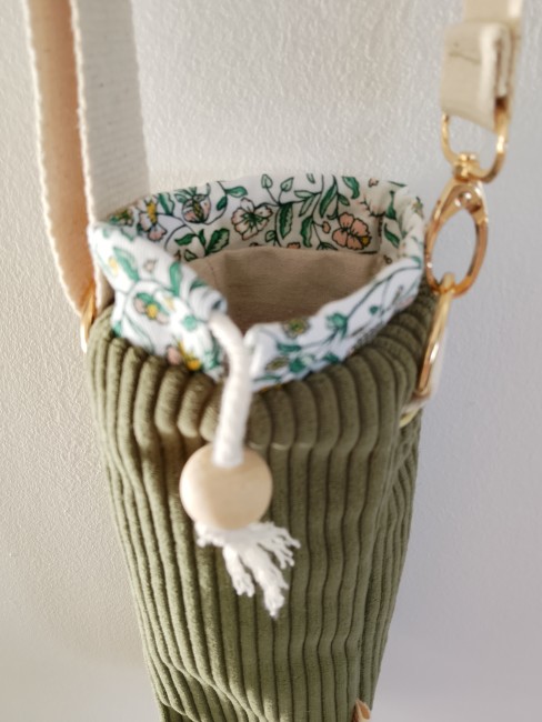 Conçu avec soin dans mon atelier, il associe un velours côtelé élégant et résistant à une coulisse colorée et à une doublure en coton naturel.